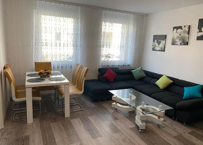 La cucina completamente attrezzata con un microonde, un bollitore elettrico e un frigo, nonché i servizi per la preparazione di tè/caffè, assicurano una migliore esperienza culinaria. La fermata dell'autobus Friedensplatz è situata a circa 5 minuti in auto da questa struttura di 80 m^2.